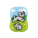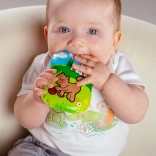 Het kussentje is gemaakt van veilige materialen zonder ftalaten en is gecertificeerd voor kinderen vanaf de geboorte. Er is keuze uit meerdere schattige diermotieven die visuele stimulatie en de eerste herkenning ondersteunen.