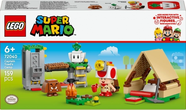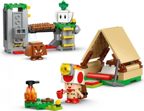 Creëer een avontuurlijke scène met het kamp van Kapitein Toad: bouw een tent met schatkist, maak een kampvuurtje, verken het rotsplateau en activeer de valbrug die een tegenstander in de “lava” laat vallen. Zoek en verstop diamanten, versla de Goomba en ontspan bij het vuur – kortom: een perfecte dosis creatief speelplezier.