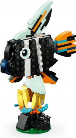 Gebruik dezelfde steentjes om een bontgekleurde vlinder met bewegende vleugels of een tropische vis op een standaard met bewegende vinnen te bouwen.