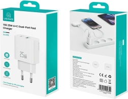 Compacte netlader USAMS 25 W met USB‑C- en USB‑A‑poorten biedt snel opladen voor smartphones en tablets. Dankzij Fast Charge‑technologie, efficiënte temperatuurregeling en overspanningsbeveiliging zorgt hij voor veilig en betrouwbaar opladen van twee apparaten tegelijk. Het elegante witte design wordt aangevuld door een duurzame constructie en praktische reisafmetingen.