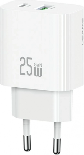 Netlader USAMS 25 W met USB‑C en USB‑A, snel laden, wit