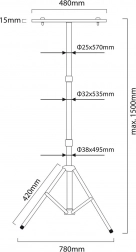 - Hoogteverstelbare telescoop 62–150 cm voor flexibele verlichting van de werkruimte.