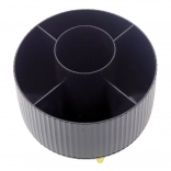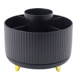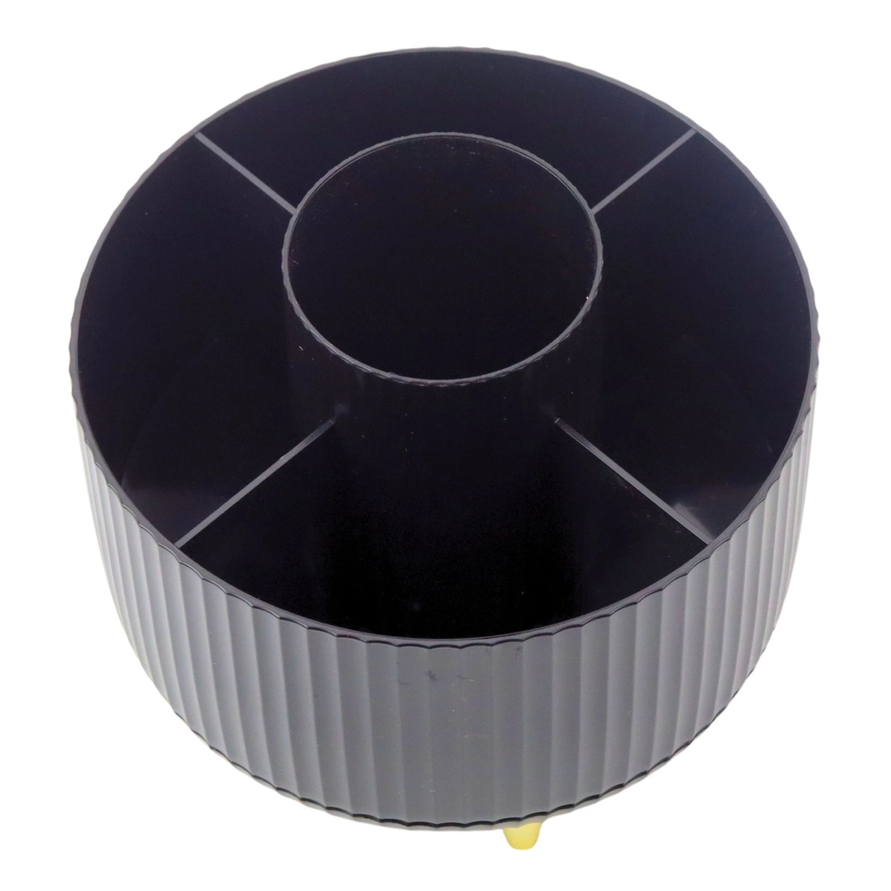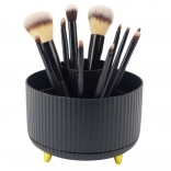 Houd je make-up netjes met deze compacte organizer die soepel 360° draait en direct toegang biedt tot al je spullen. Het open ontwerp beperkt de hoogte niet, zodat je ook langere kwasten en potloden comfortabel kunt opbergen. De minimalistische look in het zwart past zowel thuis als in de professionele salon.