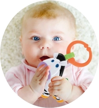 Het zachte gerammel trekt de aandacht van de baby en ondersteunt zowel het gehoor als de oog-handcoördinatie.