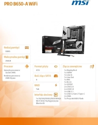 De MSI PRO B650-A WIFI is een compact mATX moederbord ontworpen voor het moderne AMD AM5 platform. Dankzij ondersteuning voor Ryzen 7000/8000/9000 processors en DDR5-geheugen tot 7600+ MHz (OC) levert het hoge prestaties, snelle respons en stabiliteit voor veeleisende applicaties, multitasking en gaming-builds.
