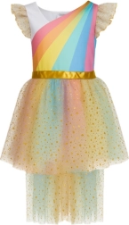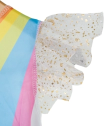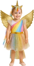 Verander een kleine prinses in een magisch wezen met dit charmante eenhoornkostuum. De glinsterende tule met gouden sterretjes, de gouden vleugels en de diadeem met hoorn zorgen voor een WOW-effect dat meteen in het oog springt. Het kostuum is ontworpen voor comfortabel dragen de hele dag door en is geschikt voor kinderen van ongeveer 4–6 jaar.