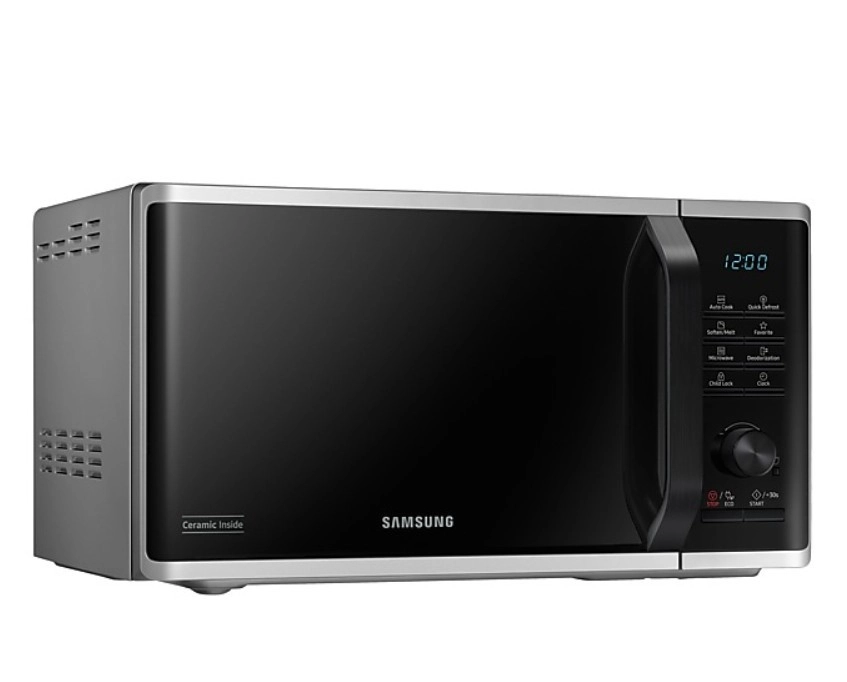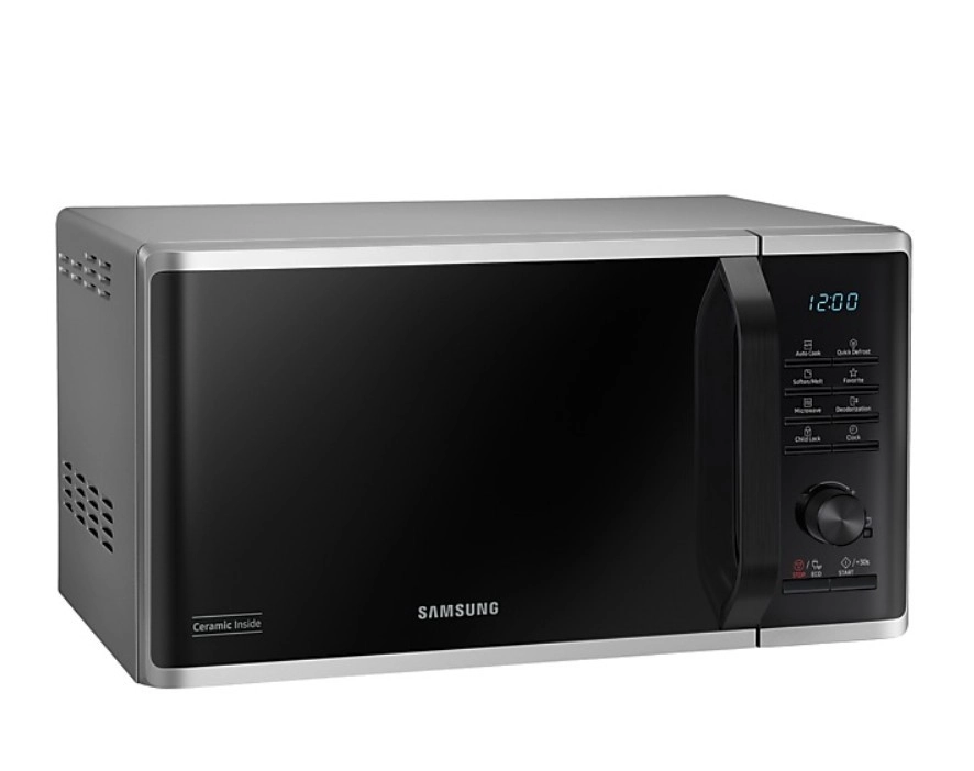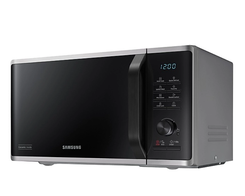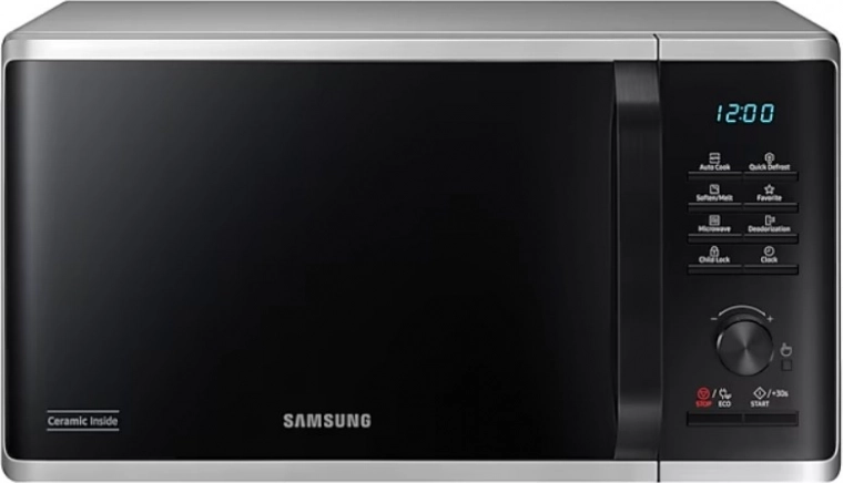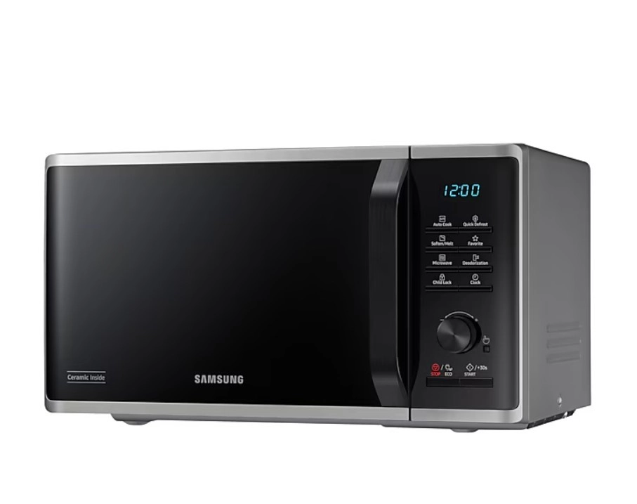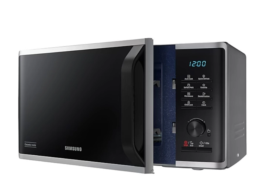 De stijlvolle magnetron SAMSUNG MS23K3515AS biedt snel en gelijkmatig ontdooien, een duurzame keramische binnenkant voor eenvoudig schoonmaken en ontgeuring voor een frisse geur binnenin. Met de zuinige ECO‑modus verlaag je het energieverbruik en dankzij Auto Menu en functies voor het smelten van boter en chocolade kook en bak je gemakkelijk zonder aanbranden.
