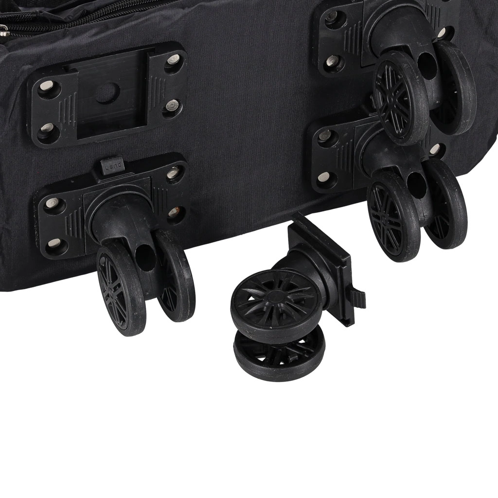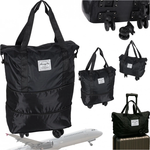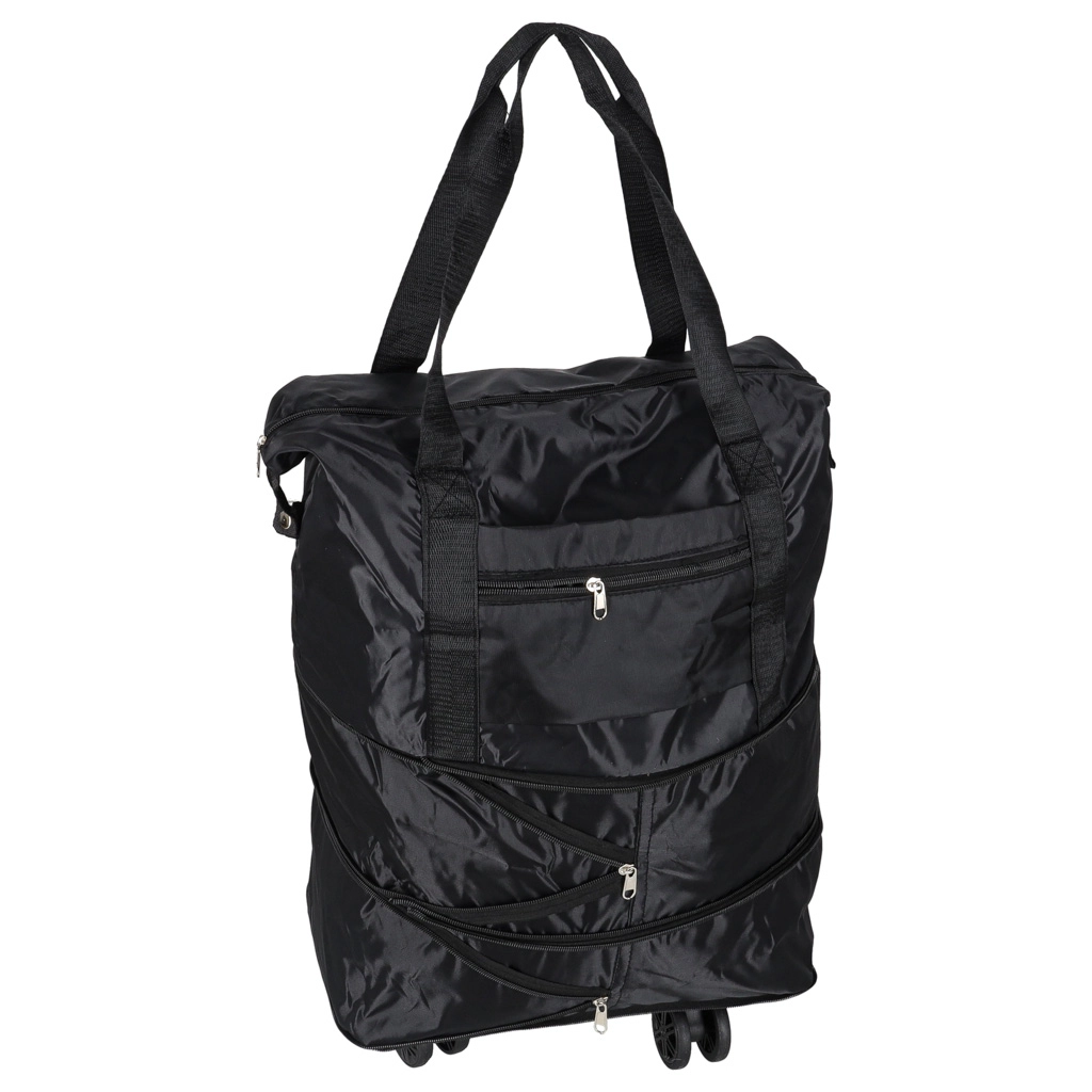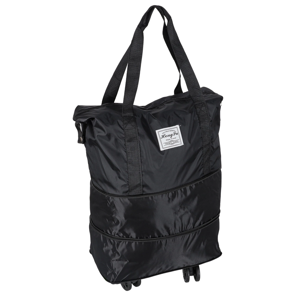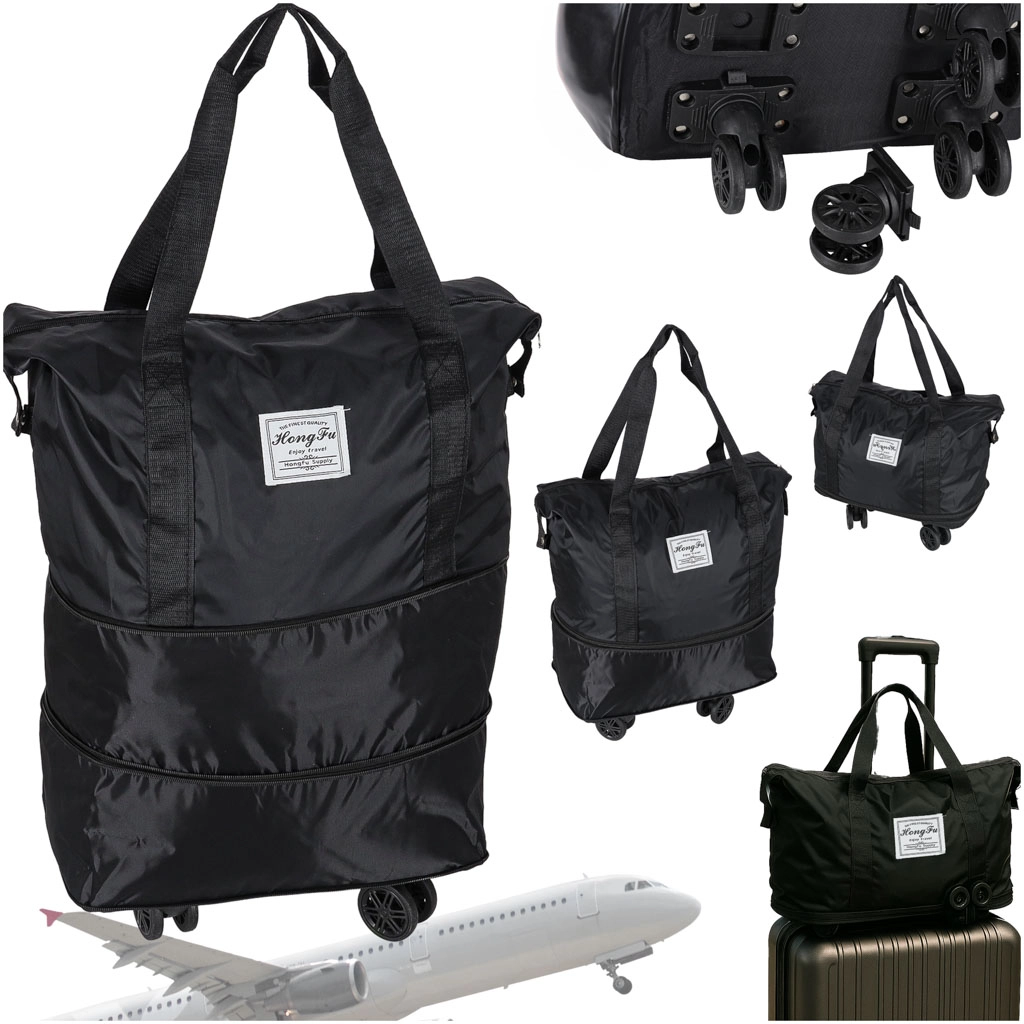 Deze lichte maar duurzame reistas combineert de flexibiliteit van een opvouwbare constructie met het rijcomfort van wielen. Het waterafstotende Oxford‑materiaal beschermt de inhoud tegen regen en vuil, terwijl de kwaliteitsrits en de verstevigde binnenzijde zorgen voor een lange levensduur. Drie uitklapstanden laten je de capaciteit afstemmen op je actuele behoeften.