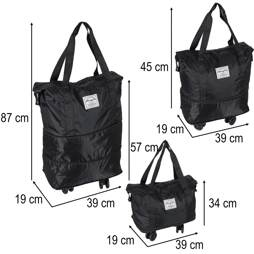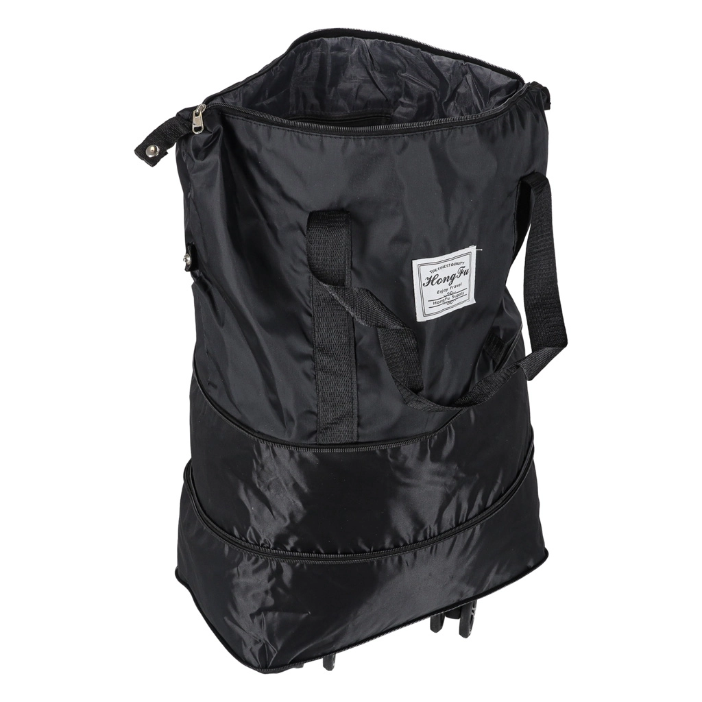Praktische opvouwbare reistrolley voor weekendjes weg en langere trips. Biedt tot drie uitklapniveaus, inhoud rond 50 liter, waterafstotend Oxford‑polyester, 360° zwenkwielen en een stevige rits. Dankzij de afneembare wielen en doordachte interne indeling ideaal voor comfortabel inpakken en eenvoudig hanteren.