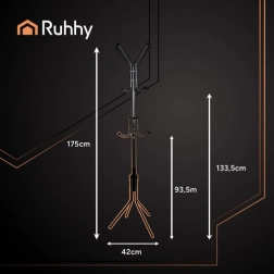 De elegante vrijstaande kapstok RUHHY biedt een praktische en stabiele oplossing voor hal, slaapkamer, kantoor en wachtkamer. Dankzij drie ophangniveaus, een stevige metalen constructie op 4 poten en afgeronde haakuiteinden houdt hij jassen, jacks, sjaals en tassen veilig en overzichtelijk. Het vrijstaande ontwerp maakt eenvoudig verplaatsen mogelijk zonder boren of gereedschap.