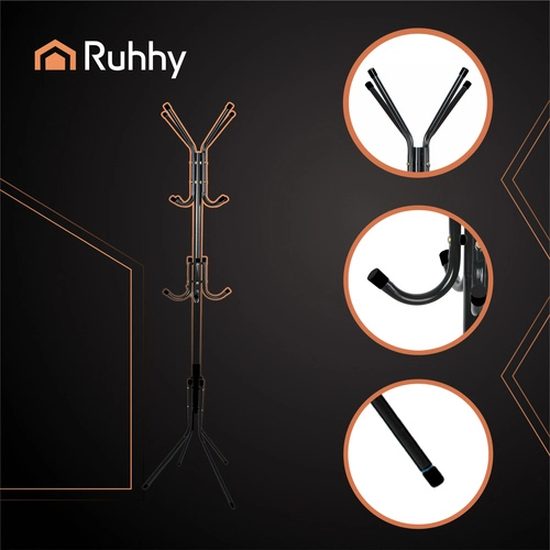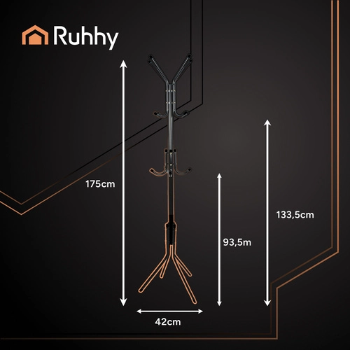 De RUHHY kapstok combineert een strak design met hoge functionaliteit. De universele zwarte kleur past in zowel moderne als klassieke interieurs en de compacte afmetingen zorgen voor uitstekend gebruik, ook in kleinere ruimtes. Dankzij de stabiele constructie en drie hoogtes van de haken bergt u zowel dagelijkse als seizoensgebonden kleding comfortabel op.