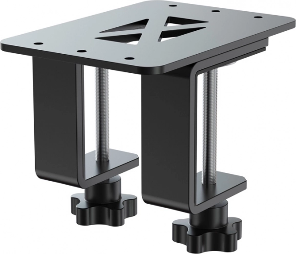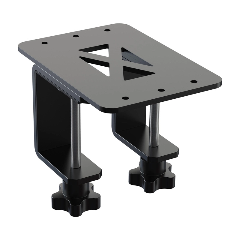 De C-klem met stelschroef maakt eenvoudige en snelle bevestiging aan de tafelrand mogelijk – ideaal voor zowel een thuisopstelling als een simulator-cockpit.
