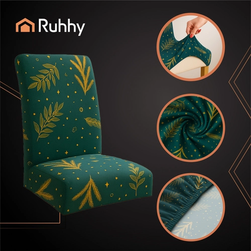 RUHHY kerst elastische stoelhoezen, groen, set van 6 stuks