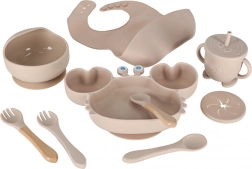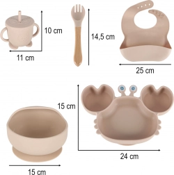 Siliconen eetset voor kinderen krab, 9-delig, beige
