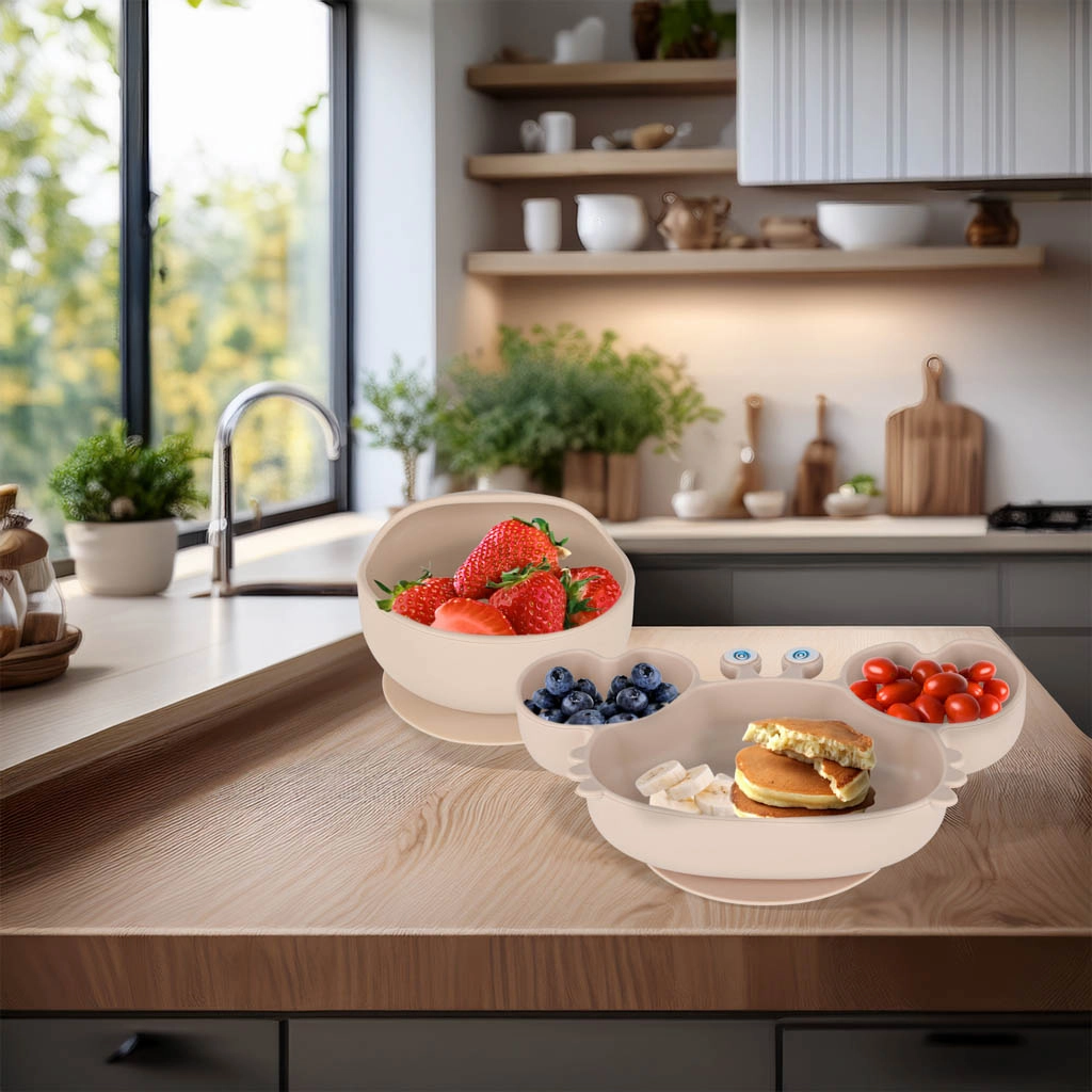 Het speelse design motiveert kinderen om te eten en de drie compartimenten helpen gebalanceerde porties te serveren zonder smaken te mengen.
