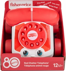 De klassieke trektelefoon Fisher-Price Chatter in iconisch rood, uitgebracht ter gelegenheid van het 80-jarig jubileum van MATTEL, heeft een draaikiezer met de cijfers 0–9, vrolijke geluiden en bewegende ogen tijdens het trekken. Perfect voor eerste rollenspellen en het ontwikkelen van de grove motoriek – van spelen zittend tot lopen met het koord.