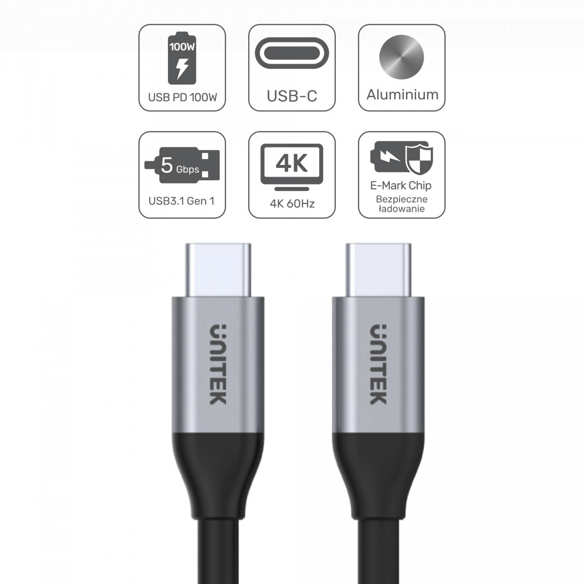 Stevige aluminium uiteinden en een geïntegreerde E‑MARK‑chip kiezen automatisch veilige stroomparameters, zodat laden en synchroniseren snel en betrouwbaar zijn. De lengte van 2 m biedt comfortabel bereik thuis, op kantoor en onderweg – van het aansluiten van een laptop op een 4K‑monitor tot het verbinden van een telefoon met een tv.