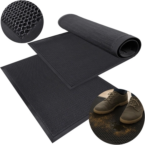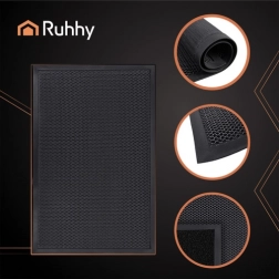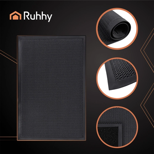 De RUHHY mat is een betrouwbare oplossing voor ingangen van huis, appartement, kantoor en winkel. De harde en duurzame constructie met 3D-rooster schraapt effectief modder, zand en water van schoenen, zodat het interieur langer schoon blijft. Verhoogde randen helpen vuil en vocht op de mat te houden en voorkomen omkrullende hoeken.
