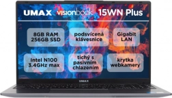 UMAX VisionBook 15WN Plus combineert een aantrekkelijk slank design met praktische functies voor dagelijks gebruik. De zuinige en vlotte Intel Alder Lake-N100 garandeert een soepele werking van kantoortoepassingen, browsen, streaming en lichtere multimedia. Het 15,6" IPS Full HD display met smalle randen biedt een scherp beeld en brede kijkhoeken, terwijl het grote touchpad en het verlichte toetsenbord met CZ/SK-indeling en numeriek gedeelte prettig typen mogelijk maken, ook in de avonduren.