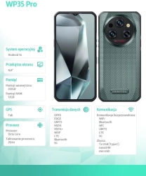OUKITEL WP35 Pro is een robuuste smartphone voor veeleisende omstandigheden met een grote 11.000 mAh batterij, een krachtige MediaTek Dimensity 6300-chip en uitgebreide uitrusting. Hij biedt een 6,6" Full HD+ display met Gorilla Glass 5, 12+512 GB met uitbreidbaarheid tot 2 TB, een 64MP hoofdcamera en robuustheid volgens IP68/IP69K/MIL-STD-810H. Ondersteuning voor 5G, NFC, Bluetooth 5.2 en Android 14 garandeert snel en modern gebruik.