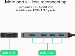 • Meer poorten, minder wisselen: maak van één USB-A vier USB-A 3.0-poorten.