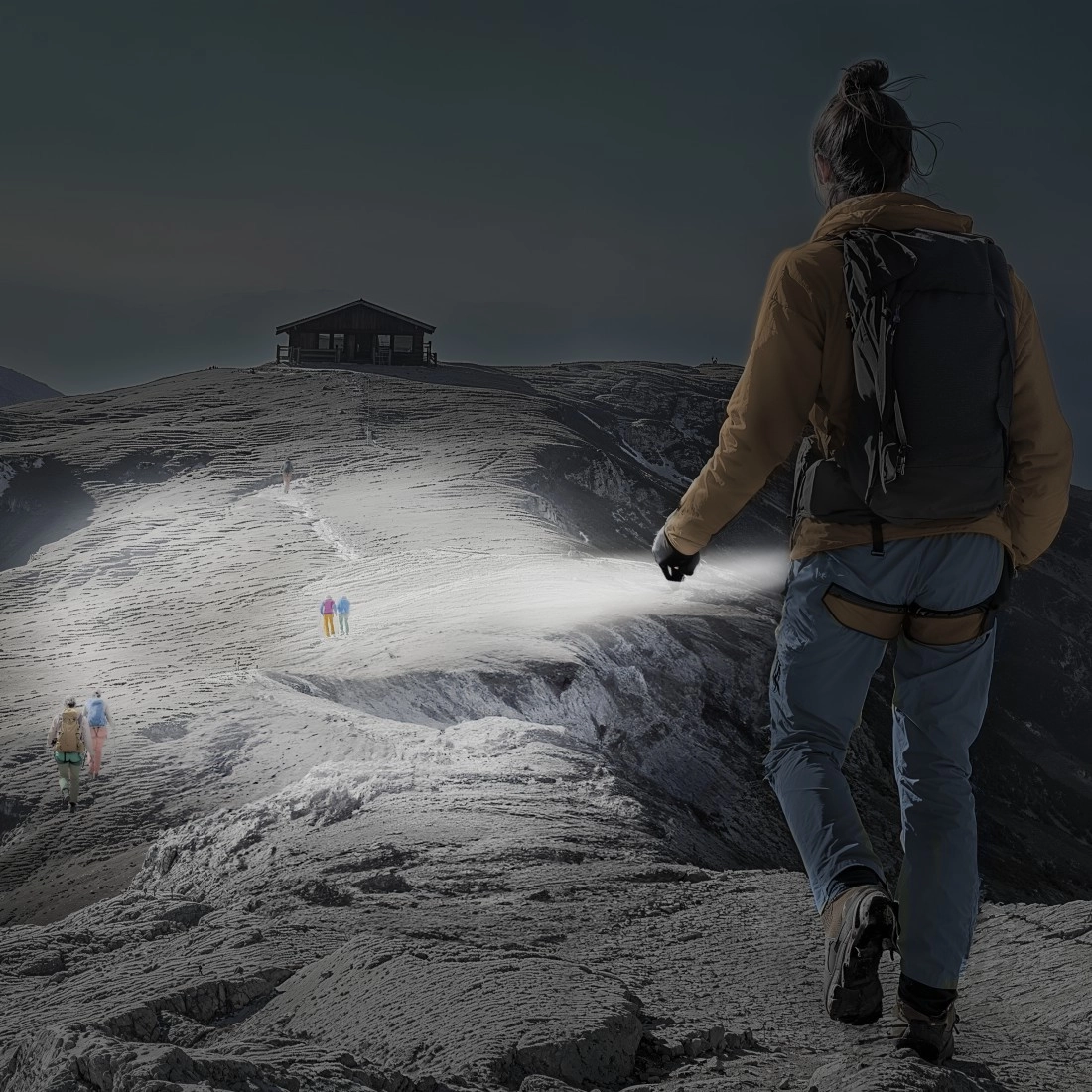 Geïntegreerde SOS-signalisatie voor noodgevallen en een bundel tot 240 m voor veilig bewegen, ook in veeleisend terrein.
