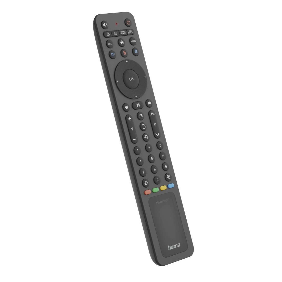 Milieuvriendelijk en praktisch: deze zonnelaadbare universele afstandsbediening 8‑in‑1 bedient tot acht apparaten en werkt zonder batterijen dankzij Powerfoyle‑technologie. Laadt op met elk licht (binnenlicht, daglicht) en heeft snelle noodbijkoppeling via USB‑C. Biedt vooraf ingestelde compatibiliteit voor 1000+ apparaten, leerbare functies van de originele afstandsbediening en sneltoetsen voor streamingdiensten. Gemaakt van meer dan 20% gerecyclede materialen.