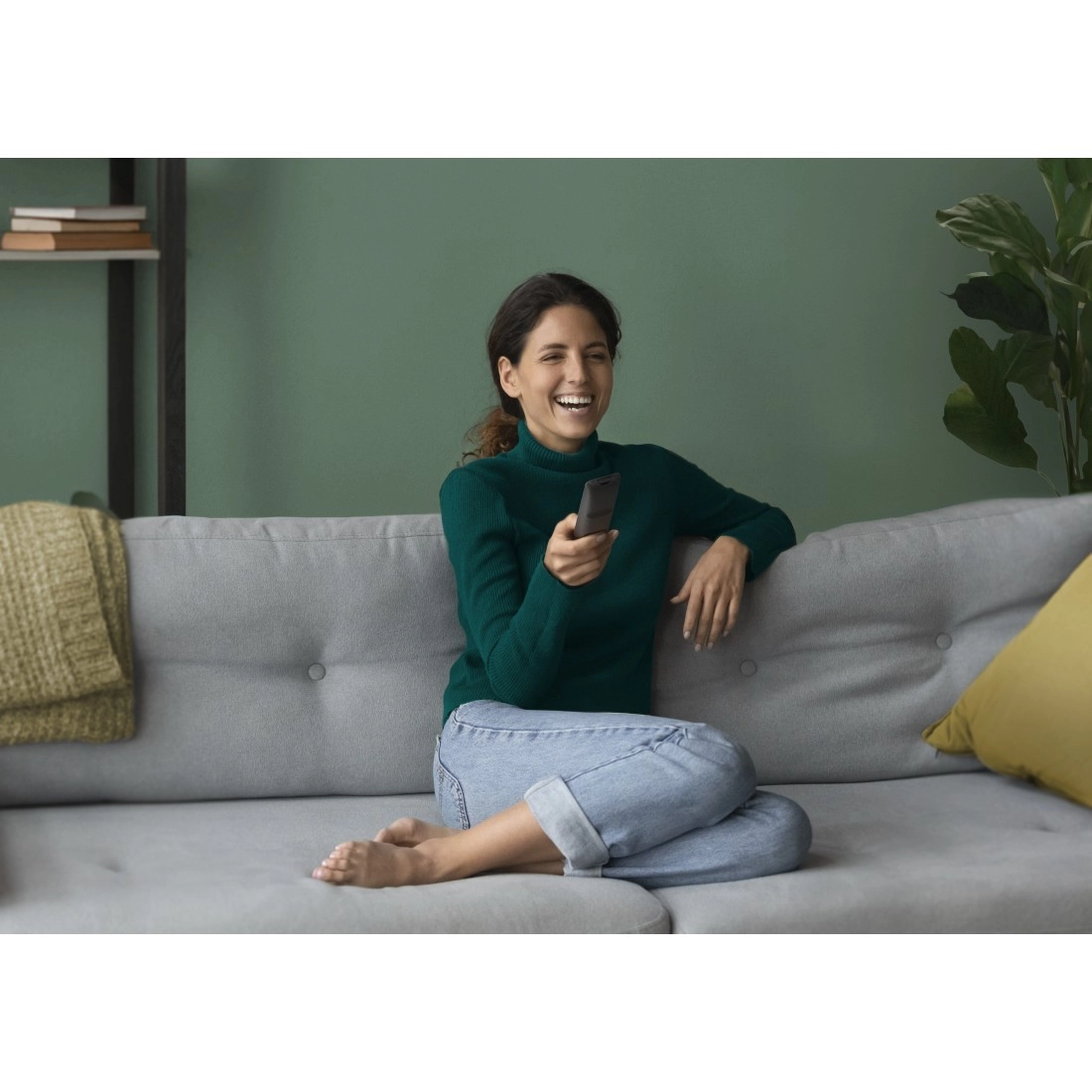 Voor direct afspelen zijn er sneltoetsen voor diensten als NETFLIX, AMAZON PRIME VIDEO en DISNEY+. De duurzame constructie met meer dan 20% gerecyclede materialen en het ergonomische design zorgen voor comfortabel gebruik en verantwoord werken zonder wegwerpbatterijen.