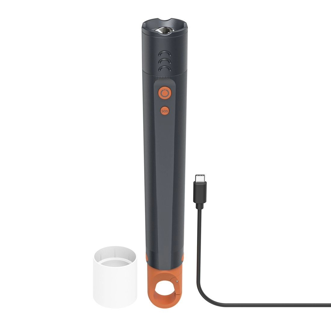Laad op altijd en overal via USB‑C. Een kleurenindicator toont duidelijk de resterende capaciteit, zodat de zaklamp je niet in de steek laat.