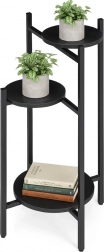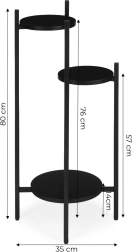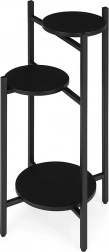 Elegante driedelige plantenstandaard van duurzame staal brengt meer groen en stijl in je huis of kantoor. Dankzij het moderne, minimalistische design, de compacte afmetingen en drie ronde legplanken benut hij de verticale ruimte optimaal. Poedergecoat metaal zorgt voor een lange levensduur, anti-slip voetjes beschermen de vloer en de draagkracht van 15 kg geeft zekerheid voor planten en decoraties.