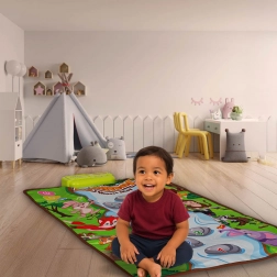 Het comfortabele, gewatteerde oppervlak is veilig om op de vloer te spelen. De mat kan eenvoudig worden opgevouwen en meegenomen.