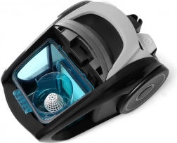 De stofzuiger is uitgerust met twee HEPA-filters die tot 99,9% van allergenen, stof en huisstofmijt opvangen. Eén filter beschermt de motor, het andere reinigt de uitblaaslucht. Zuigkrachtregeling in het handvat maakt het mogelijk het vermogen aan het oppervlak aan te passen – zachter voor gordijnen, sterker voor tapijten en harde vloeren. Dankzij de ergonomische handgreep, parkeerstand en eenvoudig legen van de container is het gebruik maximaal comfortabel.