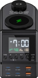 Stijlvolle wekker en krachtige oplaadstation in één. De BlitzWolf BW-FW10 biedt tot 240 W, 6 poorten (4× USB‑C, 2× USB‑A) en 2 draadloze zones (15 W voor telefoon, 5 W voor horloge). Ondersteunt snelladen PD 3.1, PPS en QC 4.0, kan laptops aan waaronder de MacBook Pro 16, en biedt dubbel alarm met een helder LED‑display. Inclusief meervoudige beveiliging voor veilig laden.