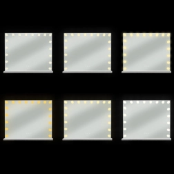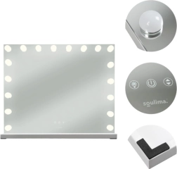 Ontdek professionele visagie in het comfort van thuis. De cosmetische spiegel SOULIMA met 18 lampen (108 LED's) levert gelijkmatige en heldere verlichting zonder schaduwen. Met het touchpaneel schakel je gemakkelijk tussen 3 lichtkleuren (warm, neutraal, koud) en stel je de helderheid traploos in naar gelang het moment van de dag en de omgeving.