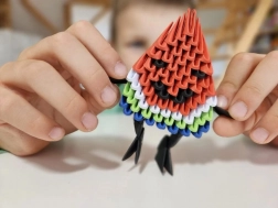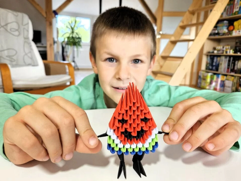 Deze speelse ORIGAMI 3D-set met watermeloenmotief is een ideale keuze voor de eerste stappen in de wereld van modulair origami. De speciale vorm van de onderdelen met duidelijk gemarkeerde vouwlijn laat je vloeiend en zelfverzekerd vouwen. In een paar eenvoudige stappen ontstaat een kleurrijke 3D-figuur die zowel als decoratie als als resultaat van creatief werk plezier geeft.