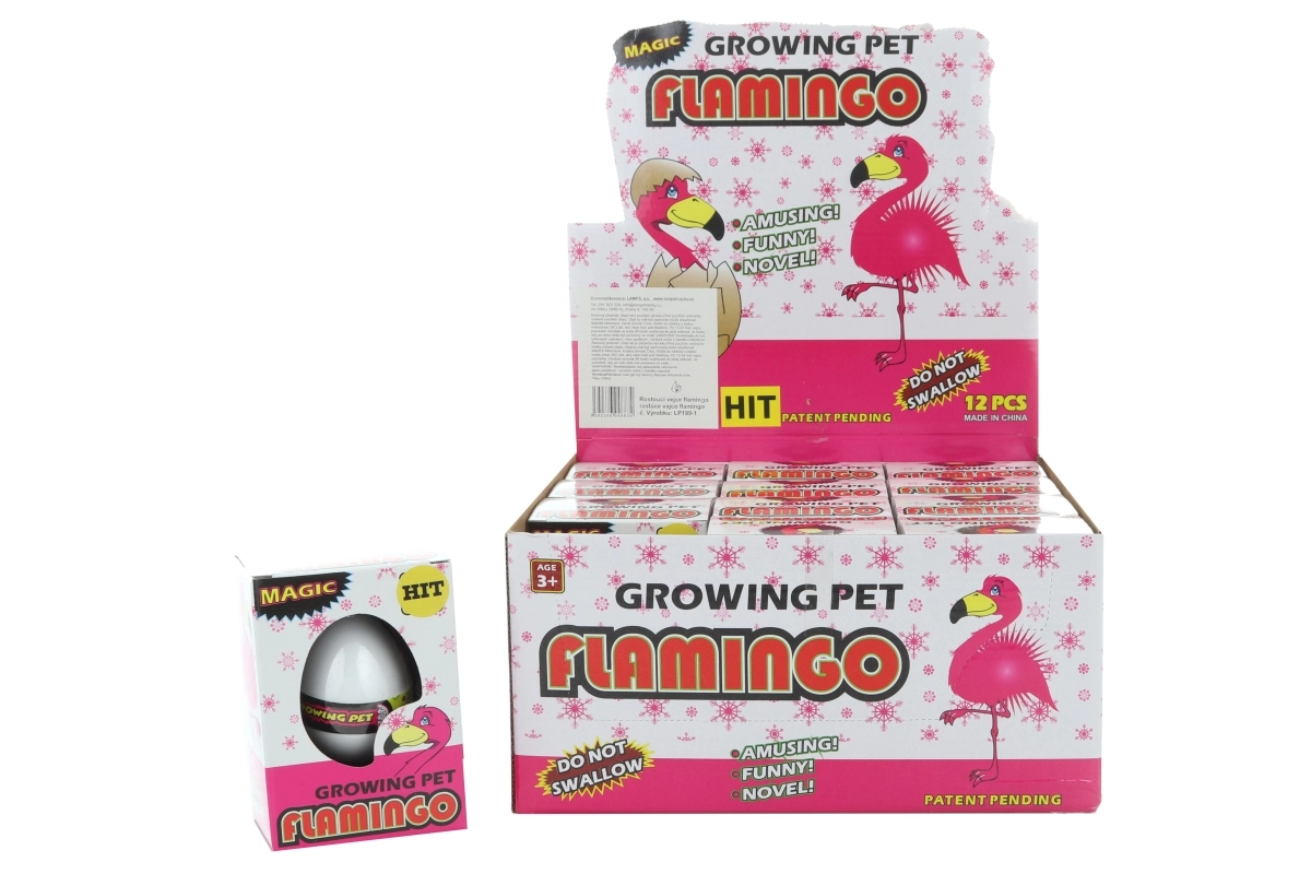 Ontdek de magie van uitkomen met een eitje waaruit na enkele tientallen uren een schattige flamingo tevoorschijn komt. Plaats het ei simpelweg in een bak met water, volg het barsten van de schaal en verheug je op de uiteindelijke verrassing. Ideaal als klein cadeautje, kantoorgrap of vermaak voor kinderen.