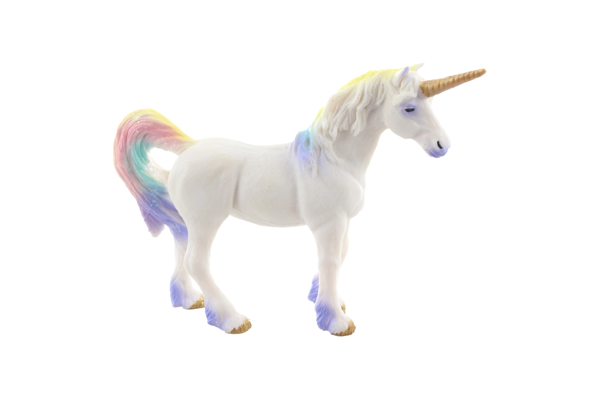 Schattig plastic eenhoornfiguur met een regenboogmanen en gouden hoorn dat zowel kleine als grote liefhebbers van de magische wereld zal bekoren. Ideaal voor creatief spel, kamerdecoratie of als lief cadeau. Compact formaat van ca. 15 × 11 × 4 cm en hoogwaardige afwerking met gedetailleerde vormgeving zorgen voor langdurig speelplezier. Geschikt voor kinderen vanaf 3 jaar.