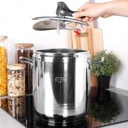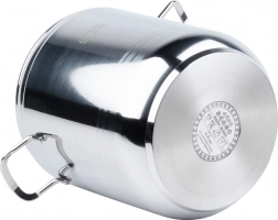 Hoogwaardige roestvrijstalen constructie en een sandwichbodem verdelen de warmte gelijkmatig. Het lichaam kan in de vaatwasser, het deksel bij voorkeur met de hand afwassen.