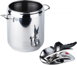 Massieve uitvoering van hoogwaardige roestvrijstalen staal, een 3-laagse sandwichbodem voor gelijkmatige warmteverdeling en mogelijkheid tot drukregeling leveren uitstekende resultaten op gas-, elektrische, keramische, halogeen- en inductiekookplaten. De pan is eenvoudig te bedienen en dankzij twee veiligheidsventielen en een betrouwbaar sluitsysteem kook je met een gerust hart. Het lichaam is geschikt voor de vaatwasser (het deksel raden we aan met de hand te wassen).