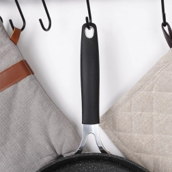 Het antiaanbakoppervlak is in een oogwenk schoon en de opening in de handgreep maakt ophangen aan een keukenrail mogelijk.