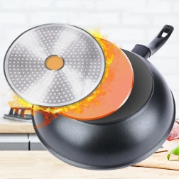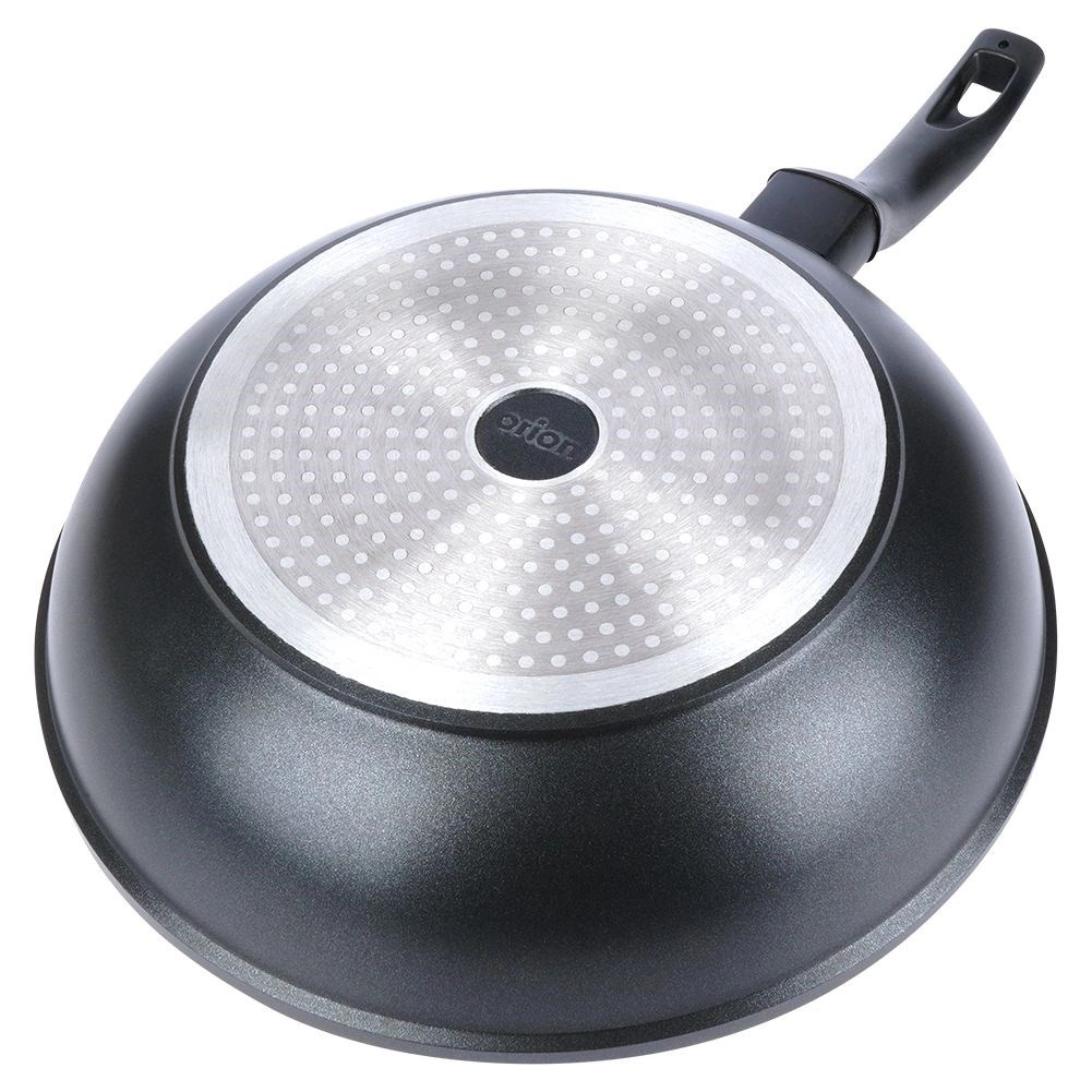 De dikke meerlagige bodem met inductieplaat verspreidt de warmte efficiënt over het hele oppervlak voor perfecte resultaten bij roerbakken en stoven.