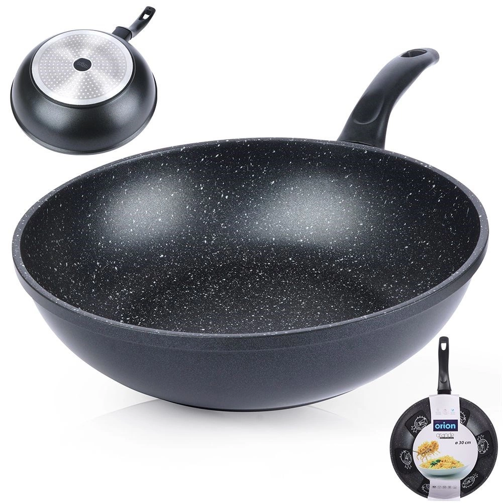 Universele granieten wok met een diameter van 30 cm van duurzaam gegoten aluminium voor snel en gelijkmatig koken. Dankzij de anti-aanbak granieten coating zonder PFOA en PTFE bereidt u gezonde en smakelijke gerechten met een minimum aan vet. Geschikt voor gas, elektrisch, keramisch, halogeen en inductie en vaatwasserbestendig.