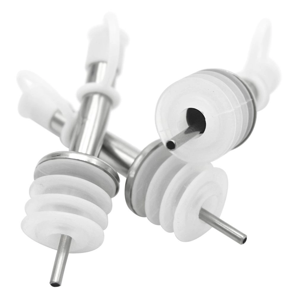 Geniet van comfortabel en nauwkeurig schenken met deze universele schenktuiten, die passen op de meeste gangbare halsdiameters. De gevormde roestvrijstalen tuit zorgt voor een vloeiende, gecontroleerde doorstroom, de geribbelde flexibele stop zit stevig in de hals en het kapje beschermt de punt tegen stof.