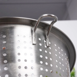 Dankzij de dichte perforatie voert het snel en efficiënt water af van pasta, aardappelen of groenten. Roestvrij staal is corrosiebestendig, smaakneutraal en makkelijk te onderhouden – gewoon afspoelen of in de vaatwasser plaatsen.