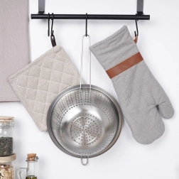 - Praktische details: opening in de handgreep om op te hangen, oog om te steunen op een schaal, stabiele pootjes.