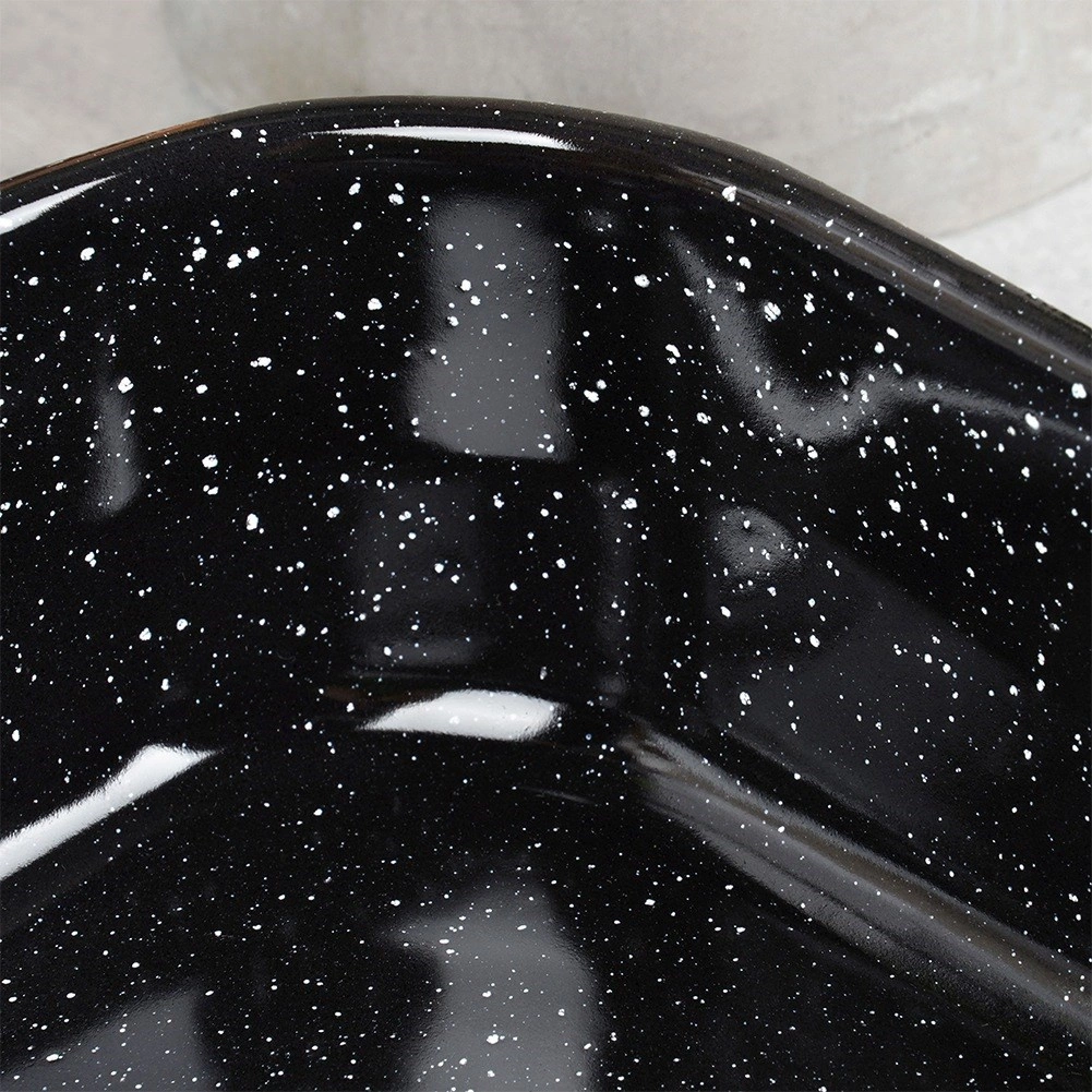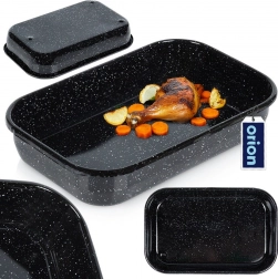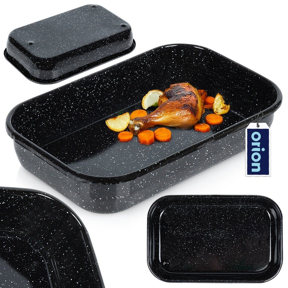 Praktische rechthoekige braadslede met een inhoud van 3,4 l en afmetingen 34 × 22 × 6,5 cm, gemaakt van hoogwaardige geëmailleerde staal, ideaal voor het bakken van vlees, groenten, taarten en zelfgemaakte pizza. Het oppervlak is gezondheidsvriendelijk, gemakkelijk schoon te maken en voedsel blijft minder snel kleven. Geschikt voor gas- en elektrische ovens en kan in de vaatwasser.