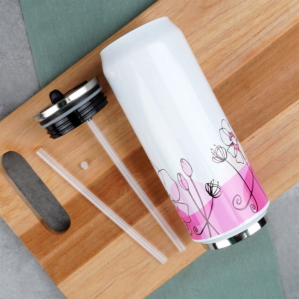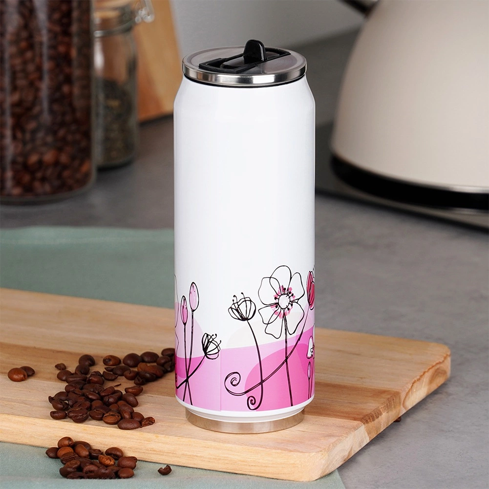 Ontdek deze moderne en praktische thermosbeker in blikvorm, die een elegant wit design met een roze bloemenmotief combineert met topfunctionaliteit. De dubbelwandige vacuümisolatie houdt de ideale dranktemperatuur urenlang vast, terwijl het roestvrij staal zorgt voor een lange levensduur en weerstand tegen dagelijks gebruik.