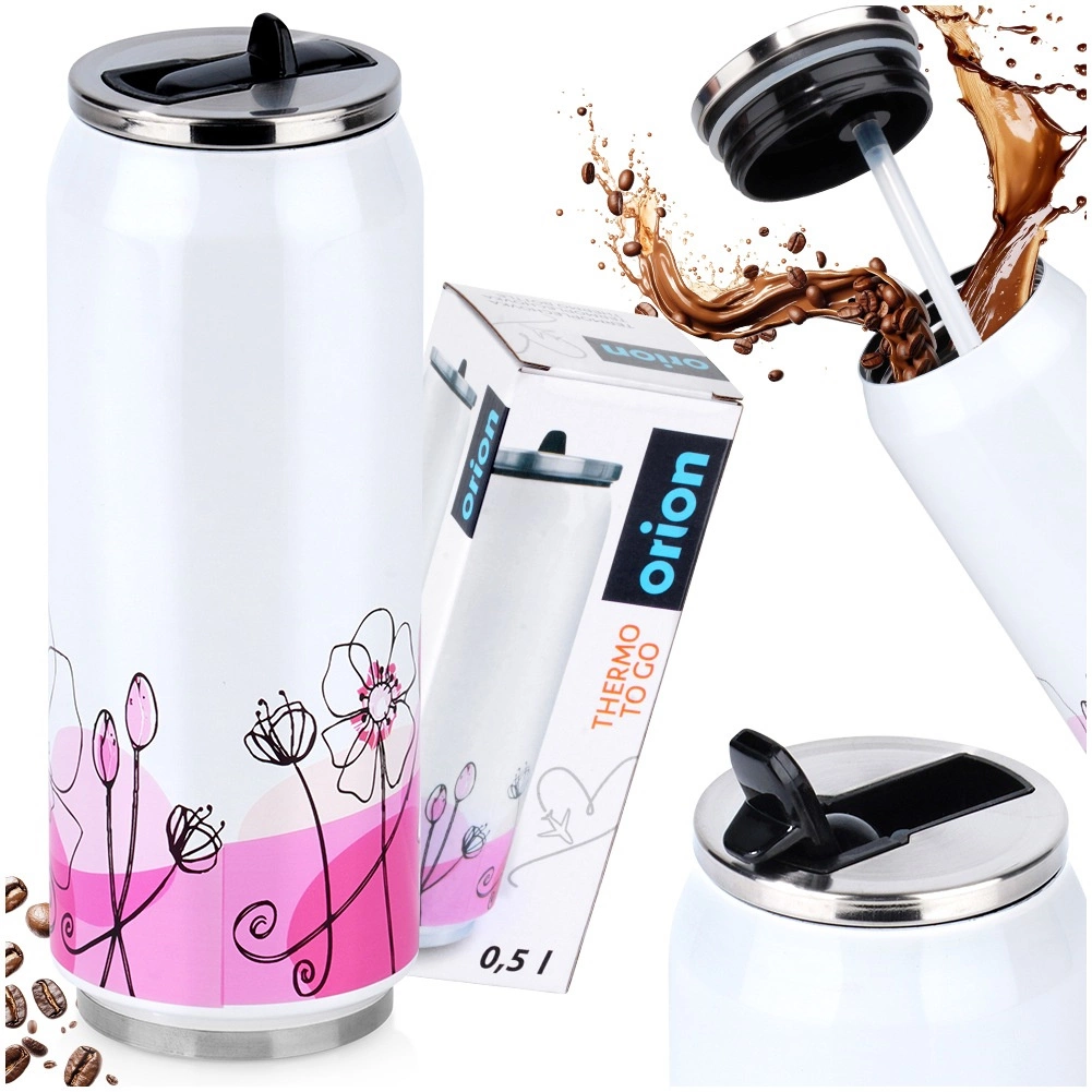 Stijlvolle thermosbeker in blikvorm met een inhoud van 500 ml. Dankzij vacuümisolatie blijven je dranken tot 12 uur warm en tot 8 uur koud. Gemaakt van duurzame roestvrij staal, met een lekdichte deksel met opklapbare tuit en rietje voor comfortabel drinken zonder kantelen. De praktische metgezel voor onderweg, op het werk en naar school.
