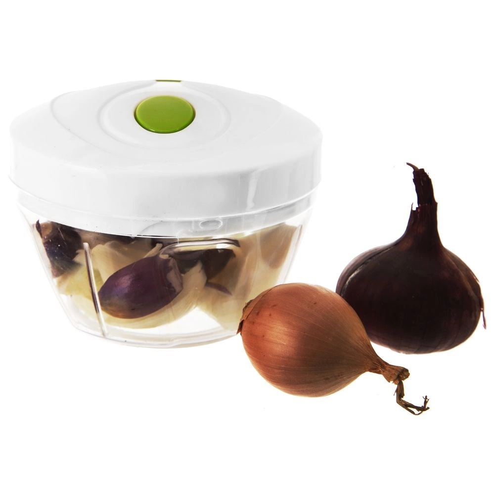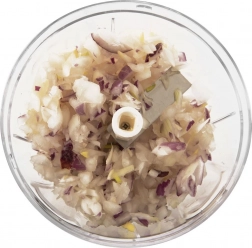 Een praktische keukenhulp voor dagelijks gebruik – een handmatige hakker met trekmechanisme. Trek eenvoudig aan het handvat in de deksel en hak, snijd en mix in een oogwenk, geheel zonder elektriciteit. Dankzij de transparante kom heb je volledige controle over de grofheid – het aantal trekbewegingen bepaalt de uiteindelijke structuur.
