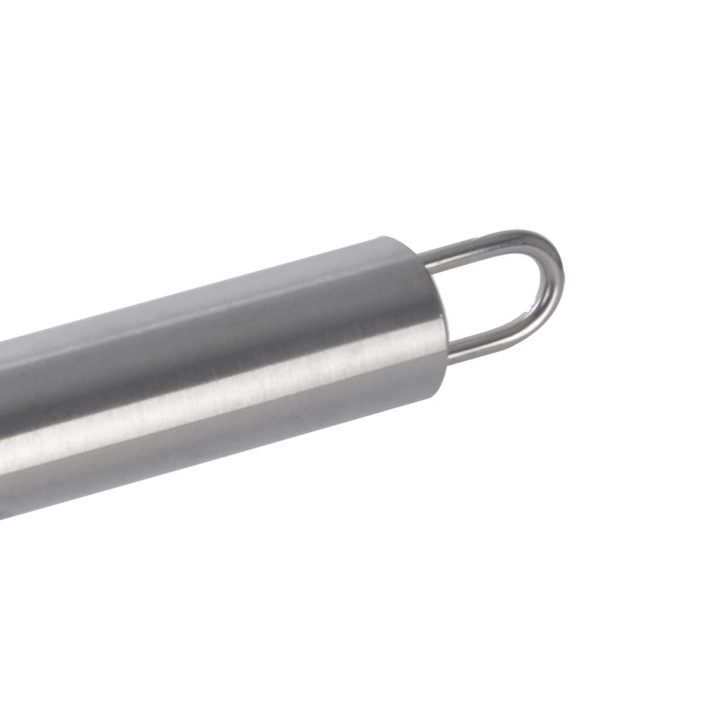 De duurzame RVS uitvoering garandeert een lange levensduur en eenvoudig onderhoud, inclusief vaatwasmachinebestendigheid. Het lange ergonomische handvat ligt goed in de hand en het ophangoog maakt ruimtebesparend opbergen aan een rail of haak mogelijk.